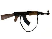 This cap firing ak 47 style assault rifle features realistic action accurate detail durable construction and woven nylon sling.